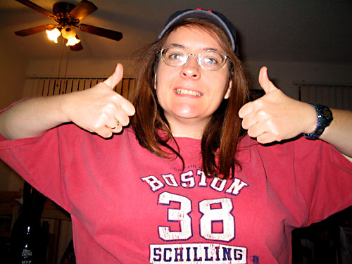 My back is killing me, and I can barely stand up straight. I've had a cold since Sunday, and it's making me oh so tired. The election is four days away, and the fear of the wrong outcome is giving me an ulcer. And yet, my beloved Red Sox made history this week (and this month), more than once - first MLB team to come back and win from a 0-3 deficit; first team to win eight straight in the postseason; first championship title in 86 years; first pitcher to win three clutch games in three straight series (Lowe). How do I love thee? I can't even count the ways. It's an overwhelming week, and I'm feeling numb from it all. And ouchy, from the back pain. Oh, and bitterly disappointed to learn Varitek is married. *sigh*